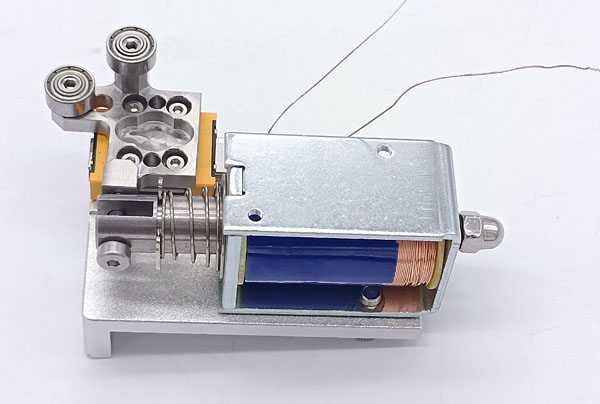 由于采用高导磁的材料和带有锥形配合的磁路结构,因此产品虽然体积小、重量轻,但与常规的小型电磁铁相比,其行程和吸引力都较大,因其绕线空间利用率高,线圈部分是敞开式的,散热效果好。