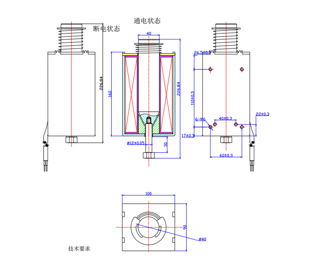 由于采用高导磁的材料和带有锥形配合的磁路结构,因此产品虽然体积小、重量轻,但与常规的小型电磁铁相比,其行程和吸引力都较大,因其绕线空间利用率高,线圈部分是敞开式的,散热效果好。