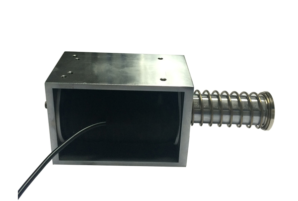 由于采用高导磁的材料和带有锥形配合的磁路结构,因此产品虽然体积小、重量轻,但与常规的小型电磁铁相比,其行程和吸引力都较大,因其绕线空间利用率高,线圈部分是敞开式的,散热效果好。