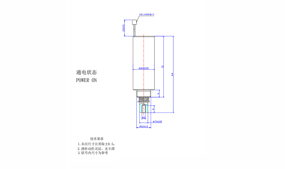 由于采用高导磁的材料和带有锥形配合的磁路结构,因此产品虽然体积小、重量轻,但与常规的小型电磁铁相比,其行程和吸引力都较大,因其绕线空间利用率高,线圈部分是敞开式的,散热效果好。